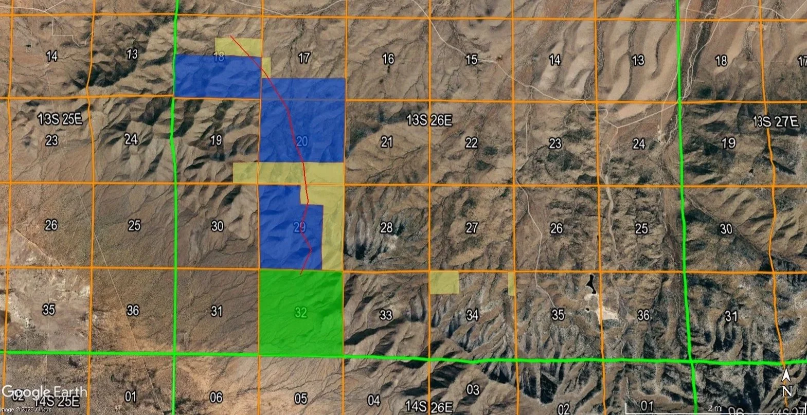The 9 mile by 3 mile Gold Mountain property in Southern Arizona, is interpreted to host a large-scale, structurally controlled gold-bearing vein system extending across approximately two miles of the mountain.